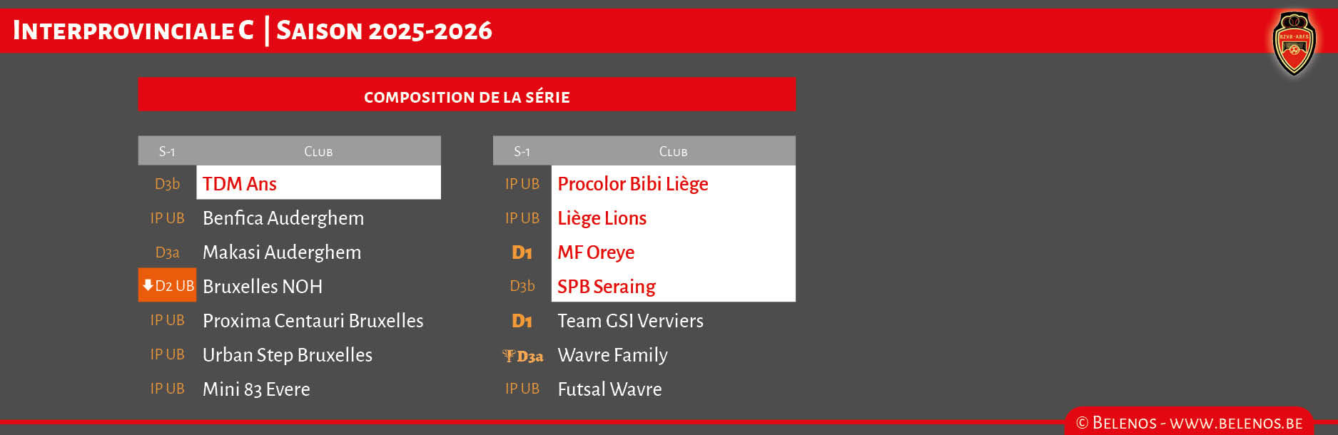 Clubs liégeois en compétition dans la saison en cours