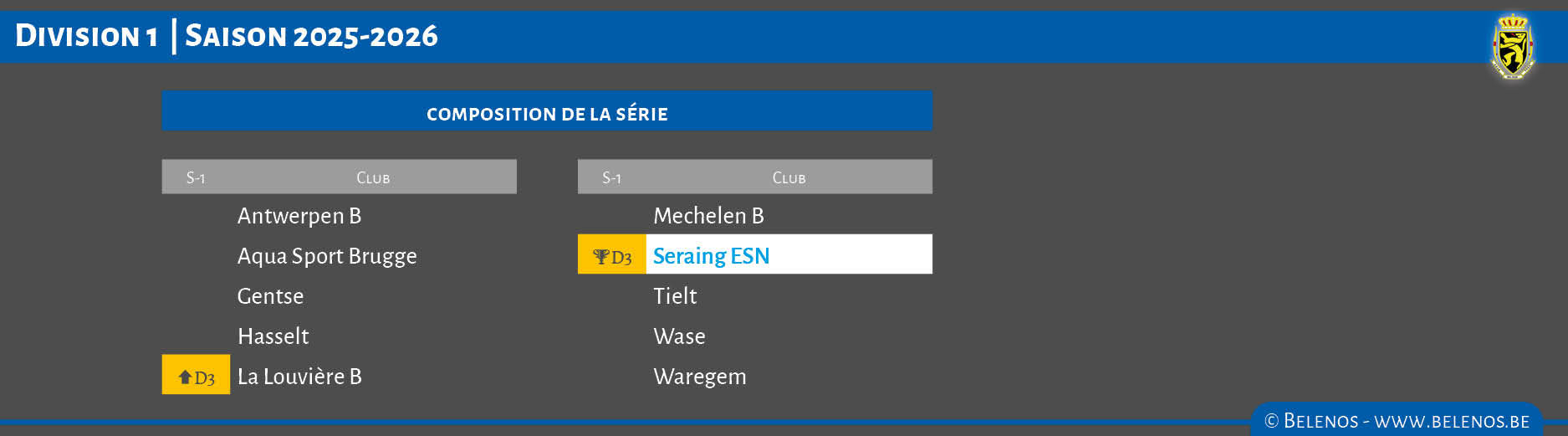 Clubs liégeois en compétition dans la saison en cours